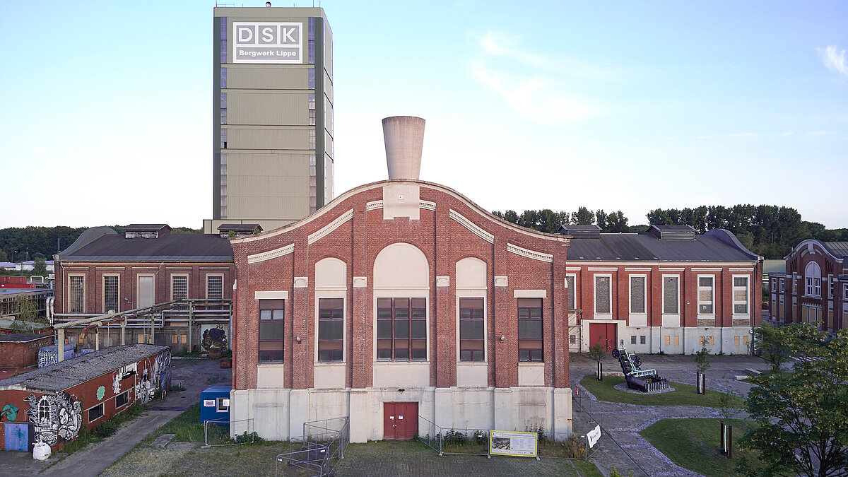 Das größte Gebäude mit einem industriehistorischen Charme weist die längste Fassade entlang der Allee des Wandels auf und liegt in der goldenen Mitte der Projektfläche. Der Gebäudekomplex beherbergt aus der Historie heraus unterschiedlichste Nutzungen. So standen hier die ehemaligen Fördermaschinen im östlichen und westlichen Teil, im Souterrain der langgezogenen Mittelachse befand sich die Heizzentrale sowie im Obergeschoss der Ausbildungsbetrieb.