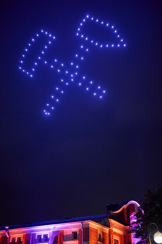 Gespannt wurde ein Programm-Bogen zwischen Straße und Museum, Sub- und Hochkultur, Performance und Urban Art, Boden und Abendhimmel: Von A wie Architekt van der Sandt bis W Weissenbacher. Emotionaler Höhepunkt war um Mitternacht die spektakuläre Drohnen-Show der FlyingStars. Ganze 80 Drohnen ließen Ruhrgebiets-Elemente wie Schlägel und Eisen, Förderturm oder einen Bergmann mit Stirnlampe am Nachthimmel erstrahlen.